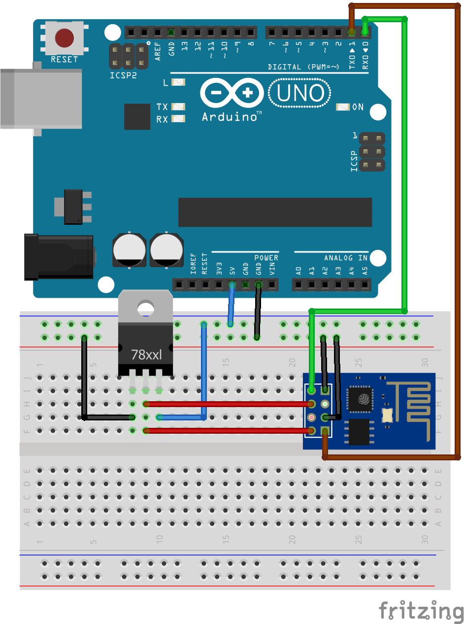 Circuit Diagram of Serial communication between ESP8266 and Arduino